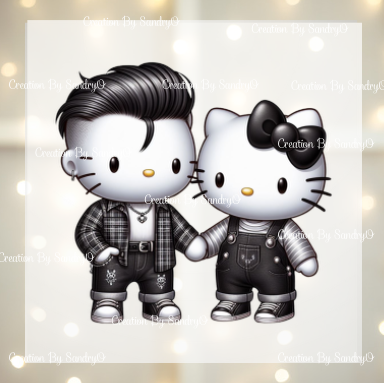 D122 Hello Kitty | Linda Pareja de gatitos | DTF Transfers | DTF